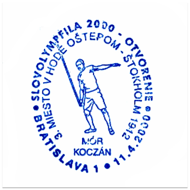 "Slovolympfila 2000-otvorenie3.miesto v hode oštepom-Štokholm 1912 Mór Koczán"