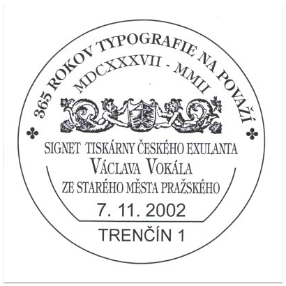 365 rokov typografie na Považí - signet tiskárny českého exulanta Václava Vokála ze Starého města Pražského